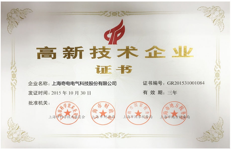 热烈庆祝上海yth2206游艇会电气科技股份有限公司荣获由上海市科技部、上海市财政部、上海市国家税务总局和上海市地方税务局联合颁发的高新技术企业证书。