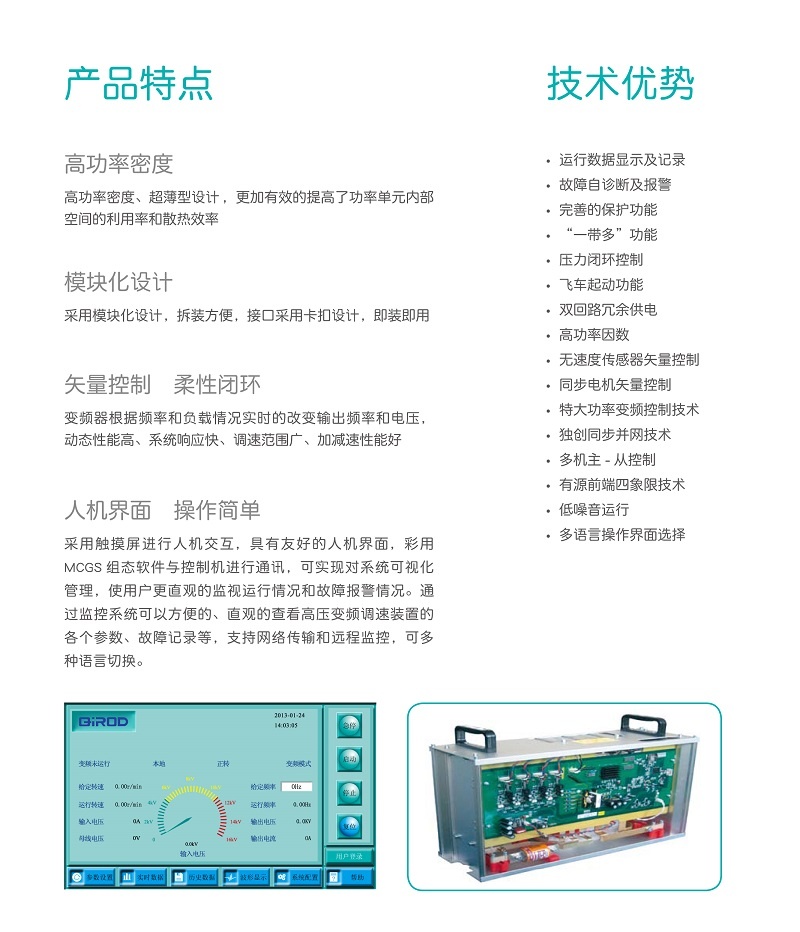 QD-MF系列高压大功率变频器是集国际高档的电力电子技术和矢量控制技术为一体而开发的注重节能环保的高压IGBT变频调速装置,不仅具备优异的控制性能,同时还结合中国的应用特点,进一步强化了产品的可靠性、环境适应性以及客户化和行业化的设计,能够满足煤矿、水泥、火力发电、石油、橡胶、冶金、化工、造纸等行业应用的需求,实现高压电机的调速运行及优化控制,并达到大规模节能降耗的作用。